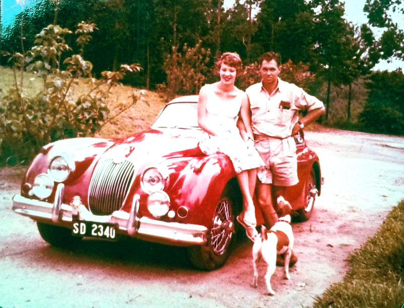 Paul and Pam in Piggs Peak, Swaziland. Paul's 1959 Jaguar XK150 sports car. Pamela Phyllis Douglas Paul |