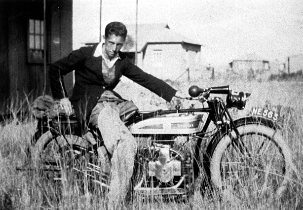 Pictured visiting his brother Douglas before he was married. Seated on a "Douglas" motorcycle. Sydney George David |